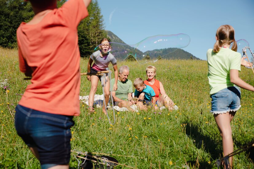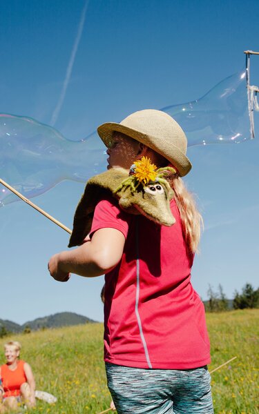 Im Sommer stehen zwei geschulte Kinderbetreuer für die kleinen Gäste zur Verfügung, um an den naturnahen und spaßigen Spielprogramm teilzunehmen. Jedes Jahr begleitet uns ein anderes Motto, im Sommer 2025 ist es "Gisela Gänseblümchen".