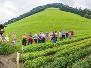 Auf dem Weg zum Hintersalcherhof entdecken wir die ersten Wiesenkräuter und sammeln einige davon, um diese bei der Kräuterbäuerin Birgit zu einem schmackhaften Aufstrich zu