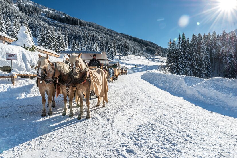 Romantisch mit der Pferdekutsche durch die winterliche Wildschönau bummeln und die zauberhafte Stimmung genüsslich auf sich wirken lassen: Die Pferdekutschenfahrten im Tiroler Hochtal machen Ihren Urlaub zum unvergesslichen Wintererlebnis.