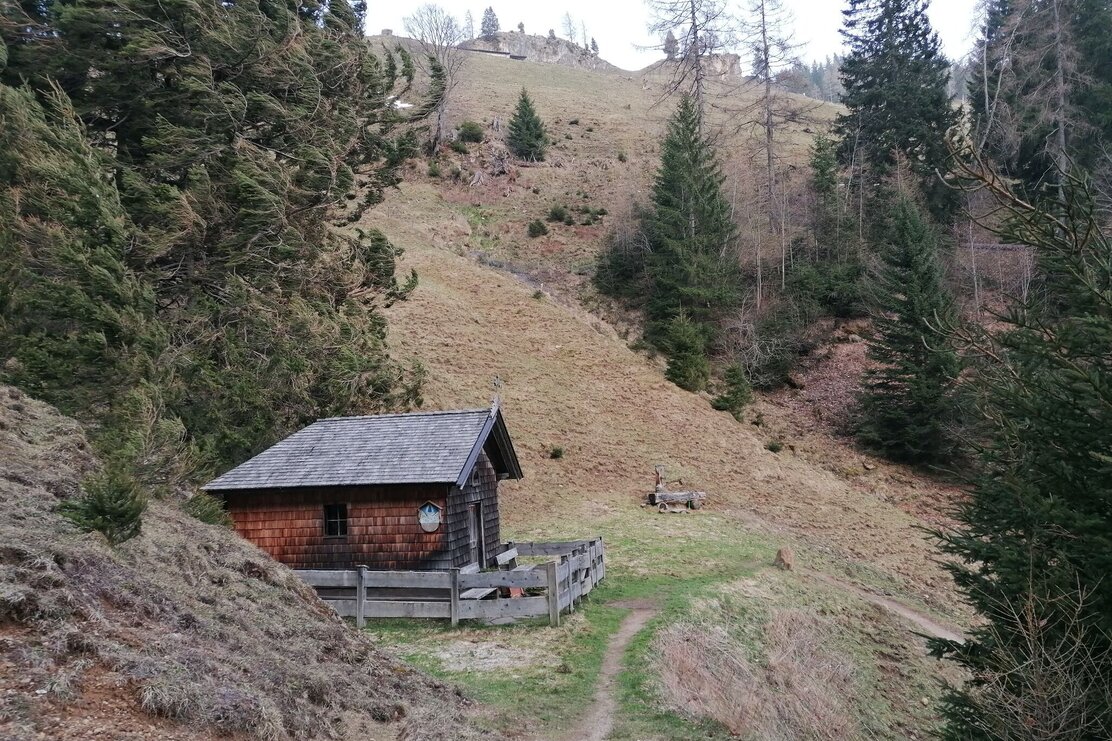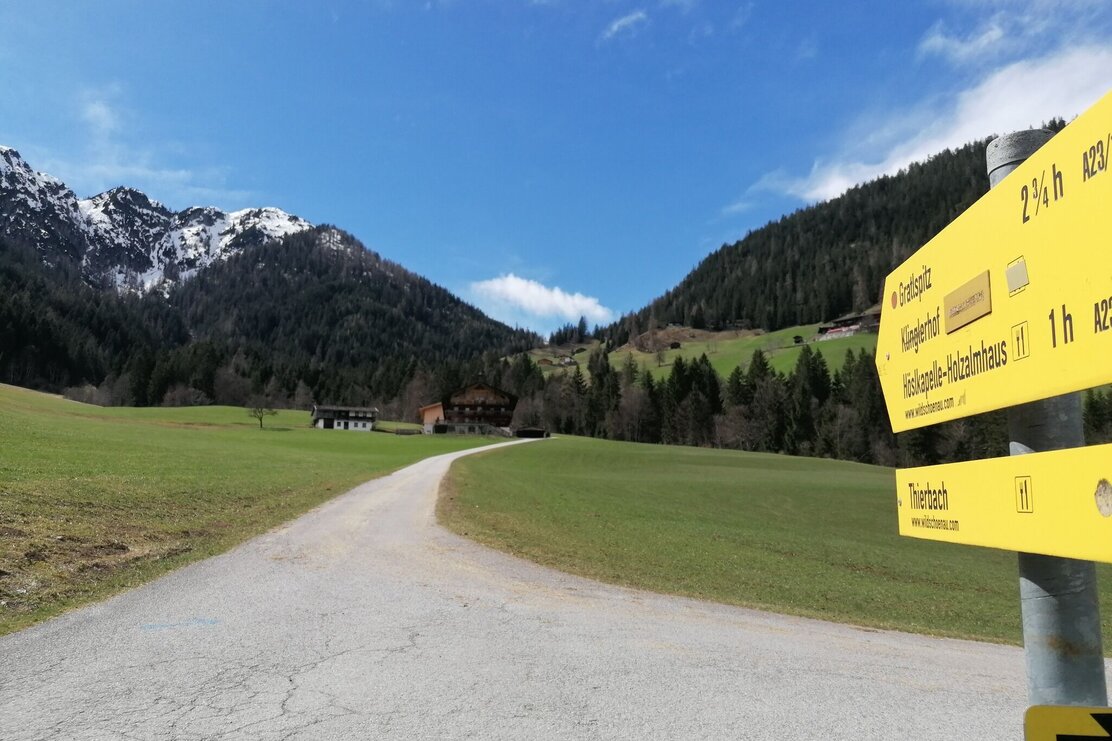 Start ist entweder im Dorfkern von Thierbach an der Kircher oder in Hinterthierbach beim Klinglerhof (die Jausenstation ist nicht mehr bewirtschaftet). Über die Almwiesen geht es hinauf bis zum Hösljoch, dem Übergang ins Alpbachtal, auf 1390 m. An diesem beschaulichen Platz mit der schönen Holzkapelle bietet sich eine erste Rast an.