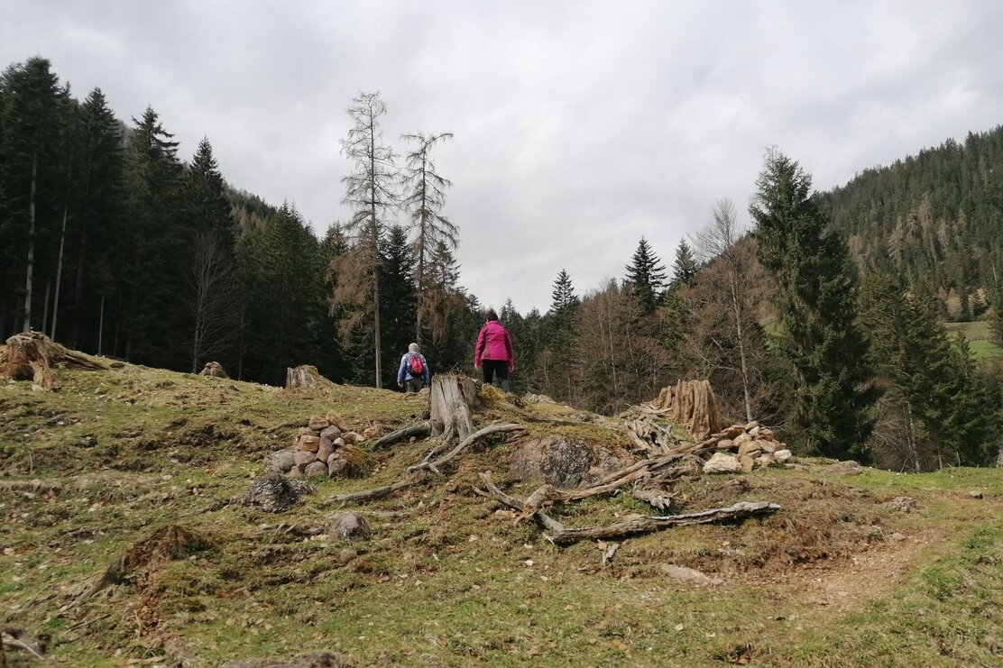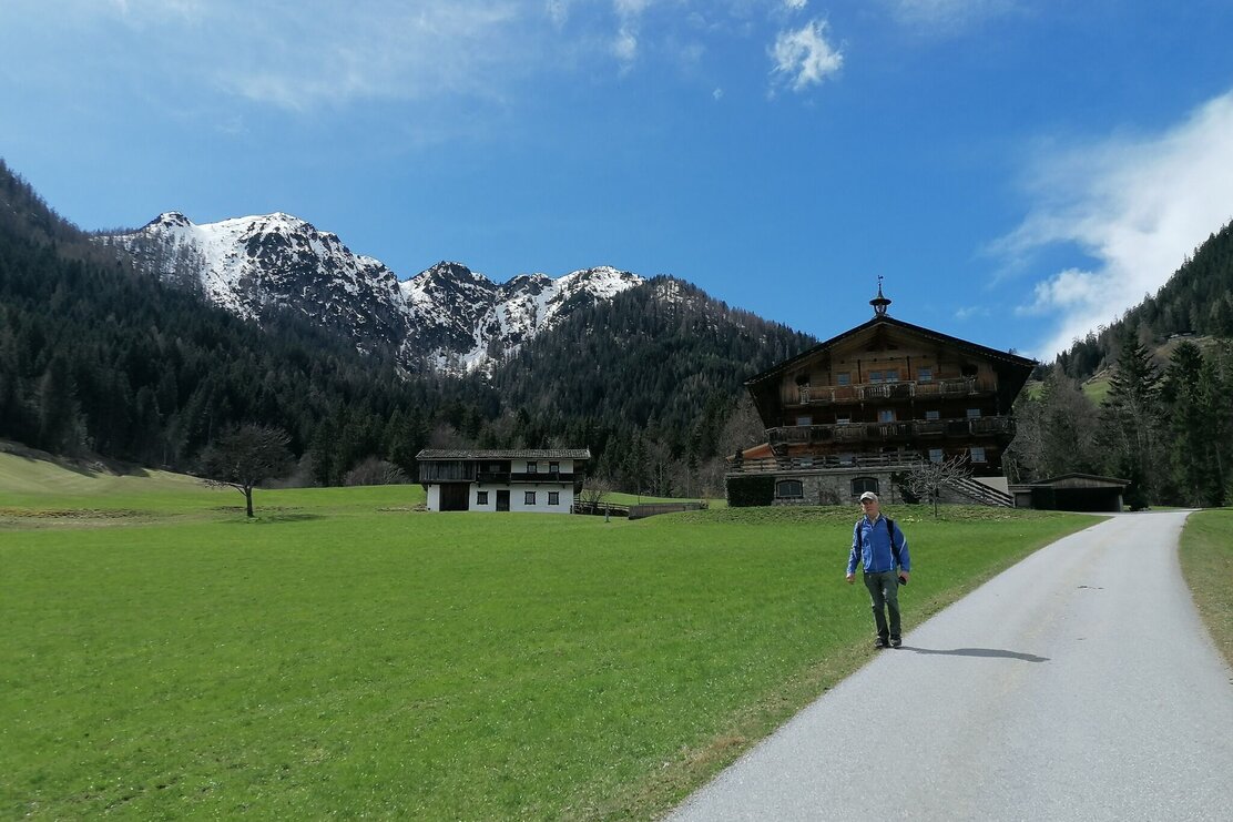Weiter dann am sogenannten Kupfersteig, einem schmalen Steig, der am Fuße des Gratlspitz geradewegs zum Kaiserbründl führt. Dort gibt eine Informationstafel Einblicke in die rege Bergbauvergangenheit der Region, wo bis 1861 Erz gewonnen wurde. Der Weg führt weiter zur Brixlegger Holzalm, wo man sich mit köstlichen Tiroler Schmankerln stärken kann. Danach geht es wieder nach unten zum Ausgangspunkt, vorbei an einer weiteren Kapelle und am Wasser entlang retour zum Klinglerhof.