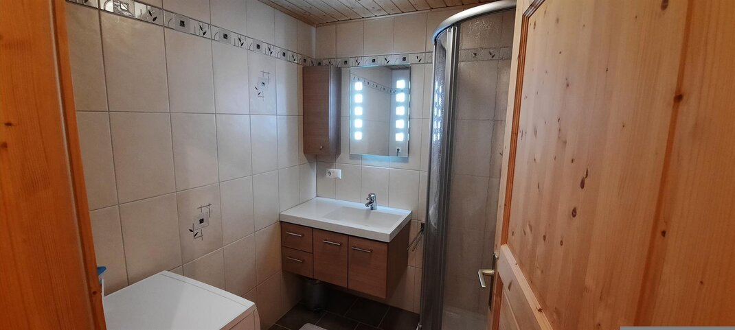Parkmöglichkeit finden Sie direkt vorm Haus bzw. der FW. Sie verfügt über eine Wohnküche, 2 Schlafzimmer, Bad und einem seperaten WC. Beheizt wird sie mittels eines Pelletsofen von der Küche aus.