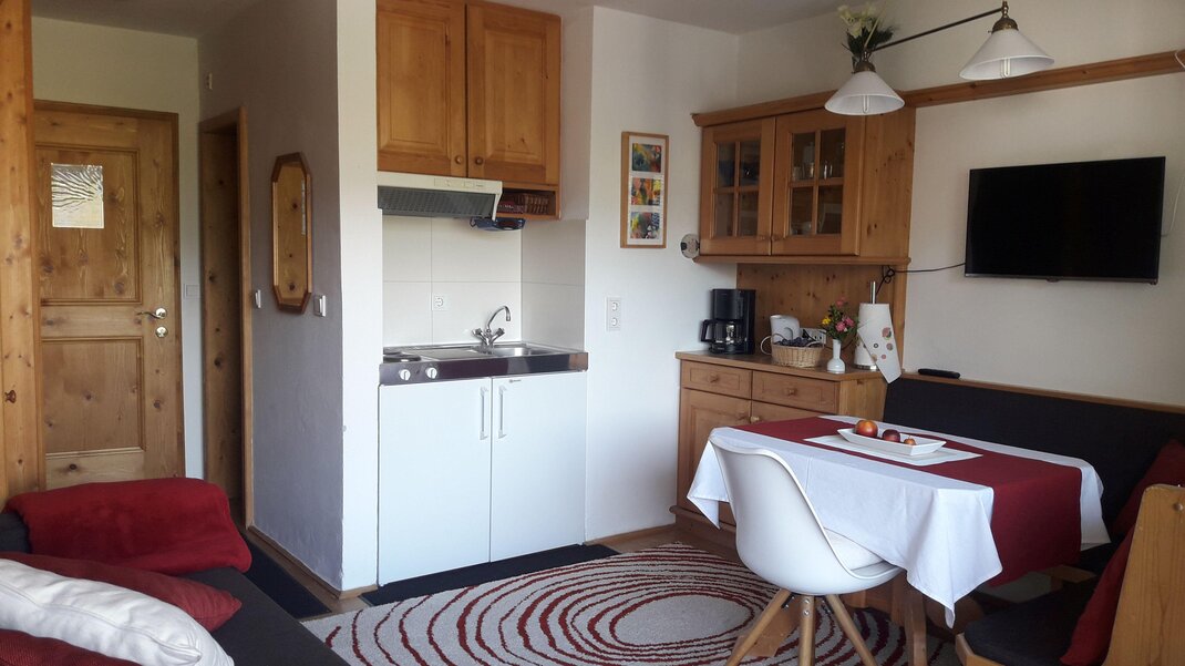 Bestehend aus 1 Wohn-/Schlafraum mit Dusche und WC, Balkon, Schrankbetten oder Ausziehcouch, Kochnische mit sämtlichem Koch- und Tafelgeschirr, Kaffeemaschine, Wasserkocher, Toaster, SAT-TV.