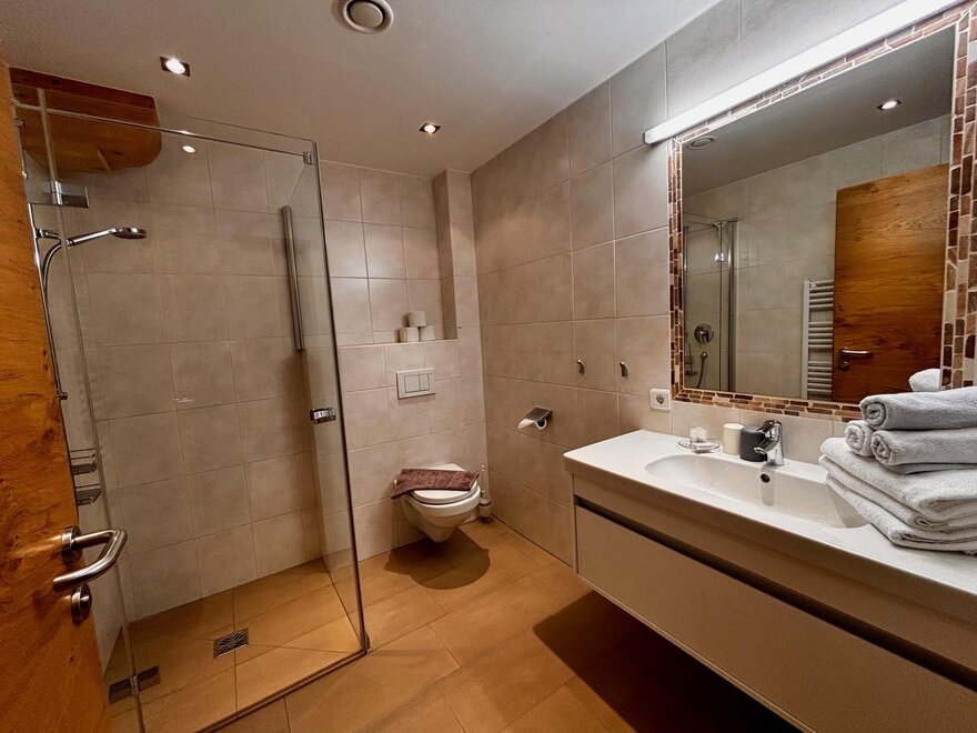 Großzügiges Zimmer mit ca. 33 m², ausgestattet mit barrierefreier Dusche und WC.