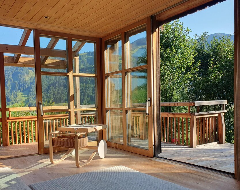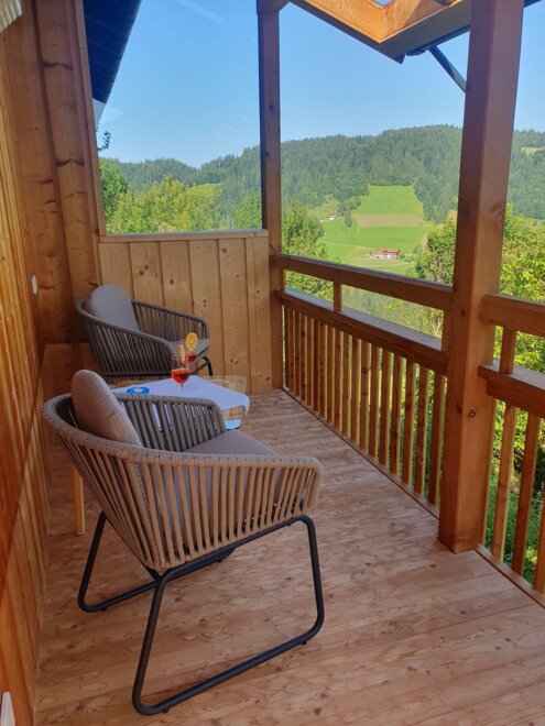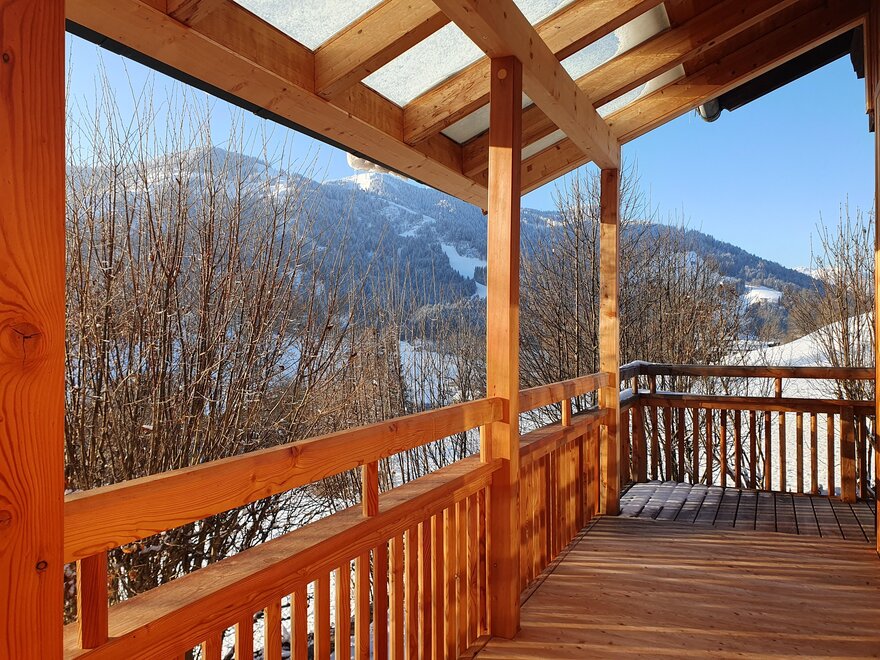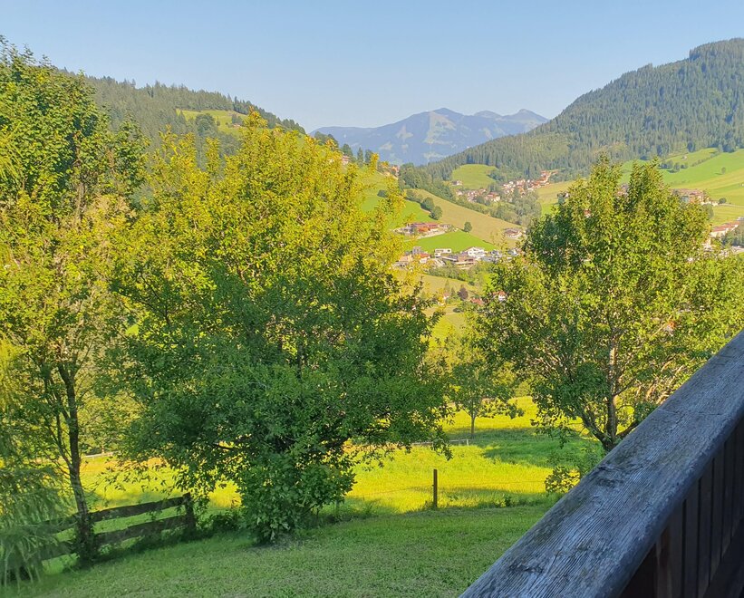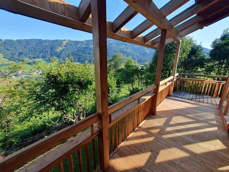 Überdachter Balkon und Terrasse mit Blick auf Niederau
