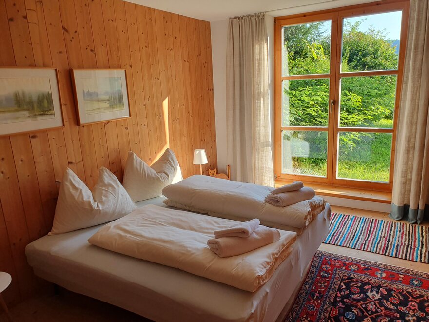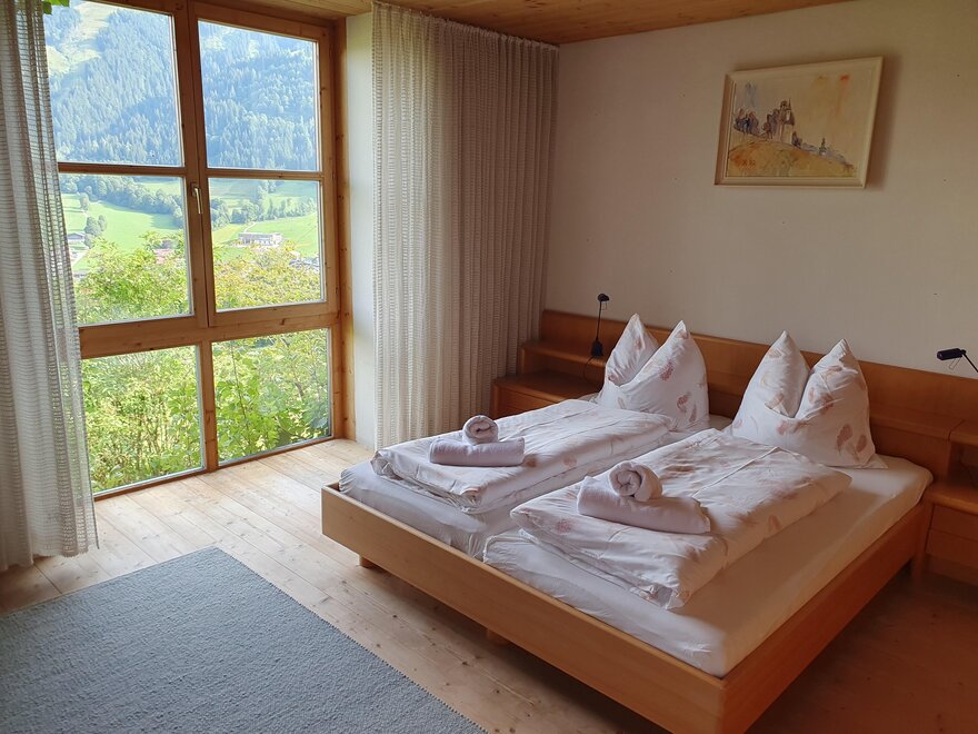 3 Schlafzimmer mit je einem Doppelbett, Blick auf Niederau