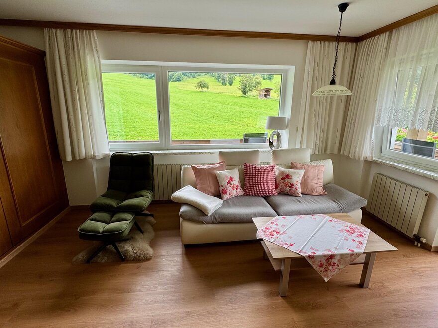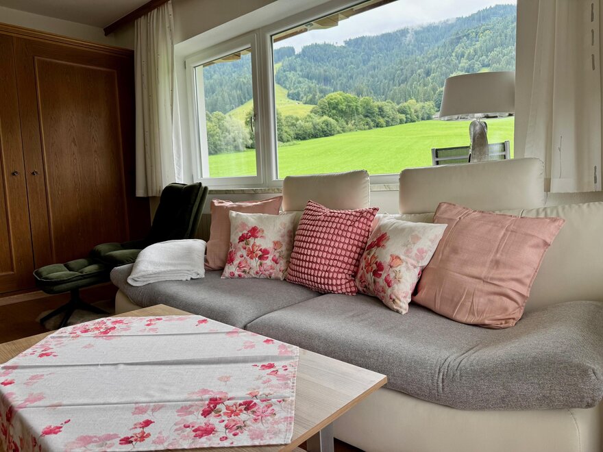 * Wohnzimmer mit Panoramafenster & gemütlicher Couch