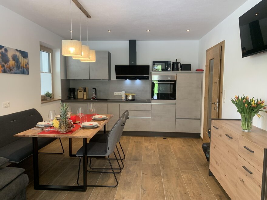 Wir bieten unseren Gästen eine gemütliche Ferienwohnung, ideal für Familien (2-4 Pers.) mit Wohnküche, zwei Schlafzimmern, Dusche, seperates WC und Sat TV im Zentrum von Auffach.