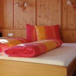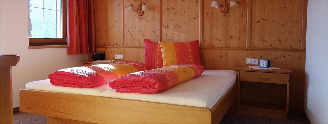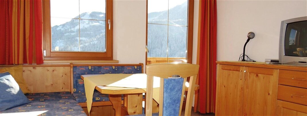 Die Ferienwohnung „Marchbachjoch" (48 m2) für 2 Personen ist komplett eingerichtet mit einem Schlafzimmer, Wohn-/ Schlafraum mit Kachelofen, Sat-TV, Küche (Ess- und Kochgeschirr, Kühlschrank, E- Herd, Geschirrspüler, Kaffeemaschine, Toaster), eigenem Abstellraum, Bad mit Dusche / WC, Bettwäsche- und Handtuchservice, Terrasse mit Liegestühlen, einem Garagenabstellplatz Zusätzlich zum Grundpreis werden EUR 60,- für die Endreinigung pro Aufenthalt/ Wohnung verrechnet. Haustiere nach Absprache.