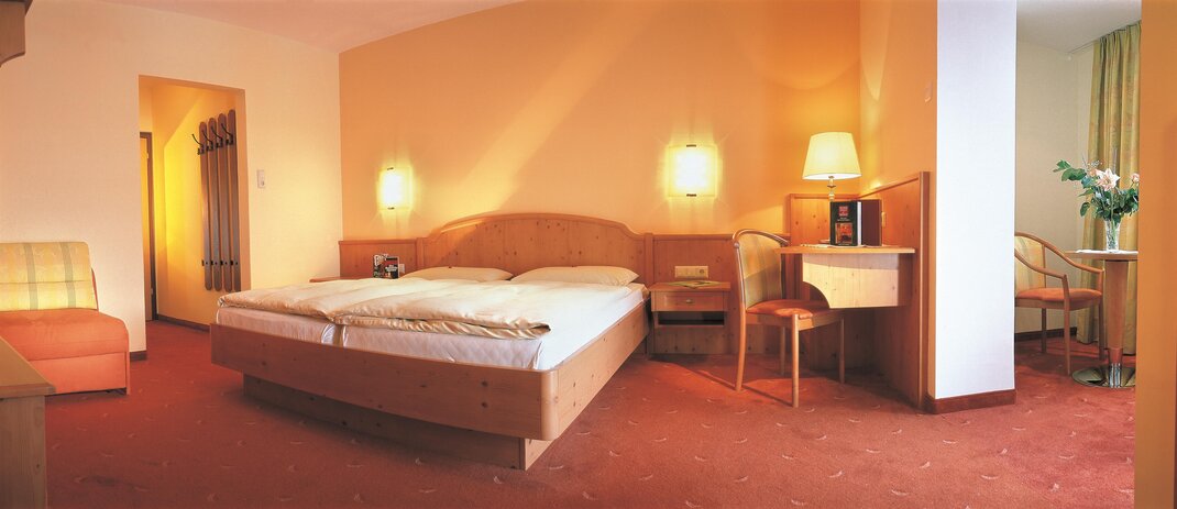Unsere im traditionellen Stil gestalteten Doppelzimmer bieten Ihnen gemütlichen Komfort und Tiroler Wohngefühl.