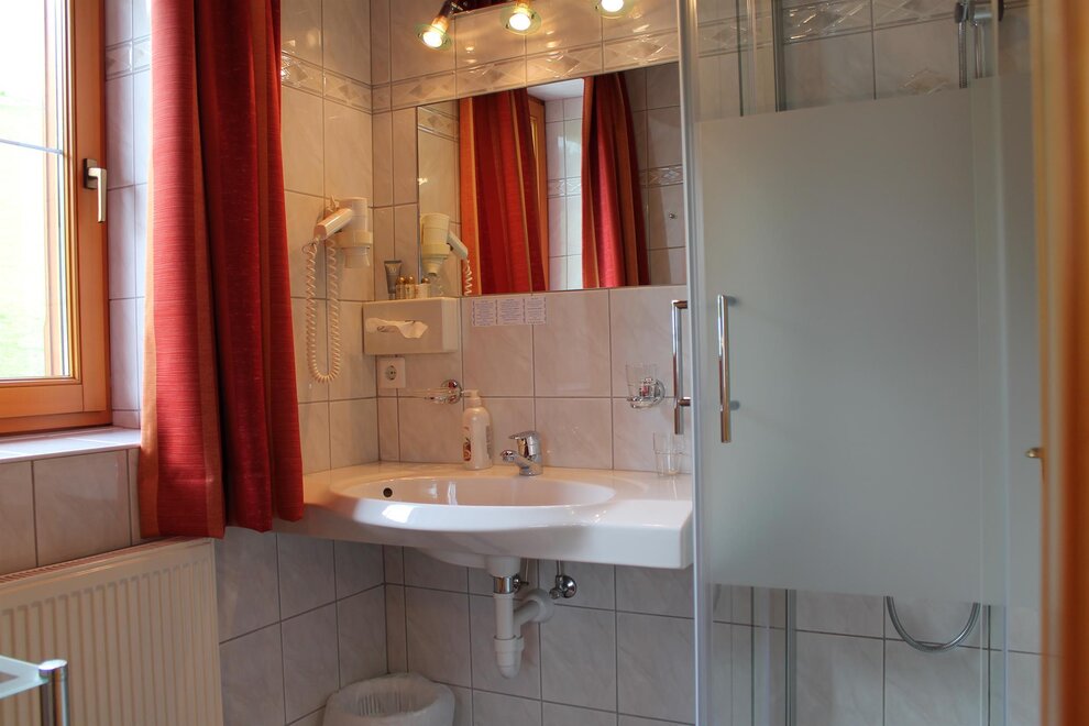 Kosmetiktücher, Kosmetikspiegel, Duschgel, Seife, Fön - Nichtraucherzimmer!Ausstattung Zimmer/Appartement