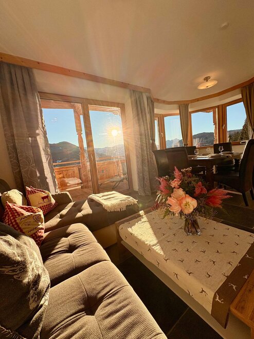 Unser Hof liegt ruhig auf 1.150m Seehöhe und bietet einen atemberaubenden Ausblick über das Tal und die Berge - die Ferienwohnung umfasst ein ganzes Stockwerk mit separatem Eingang.