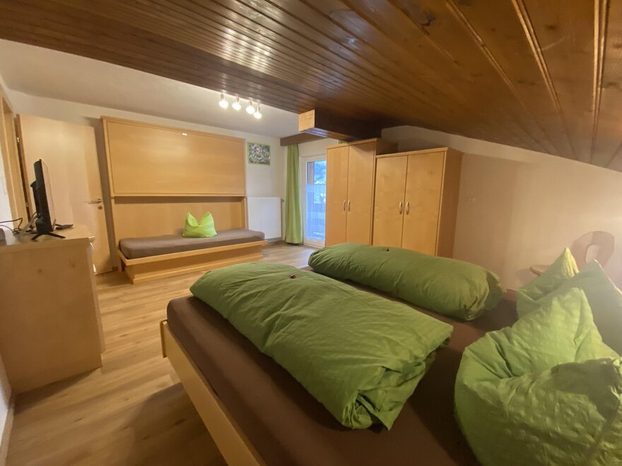 es kann ein gegenüberliegendes Extra-Doppelzimmer mit DU/WC und TV dazu gebucht werdenBetten Verteilung