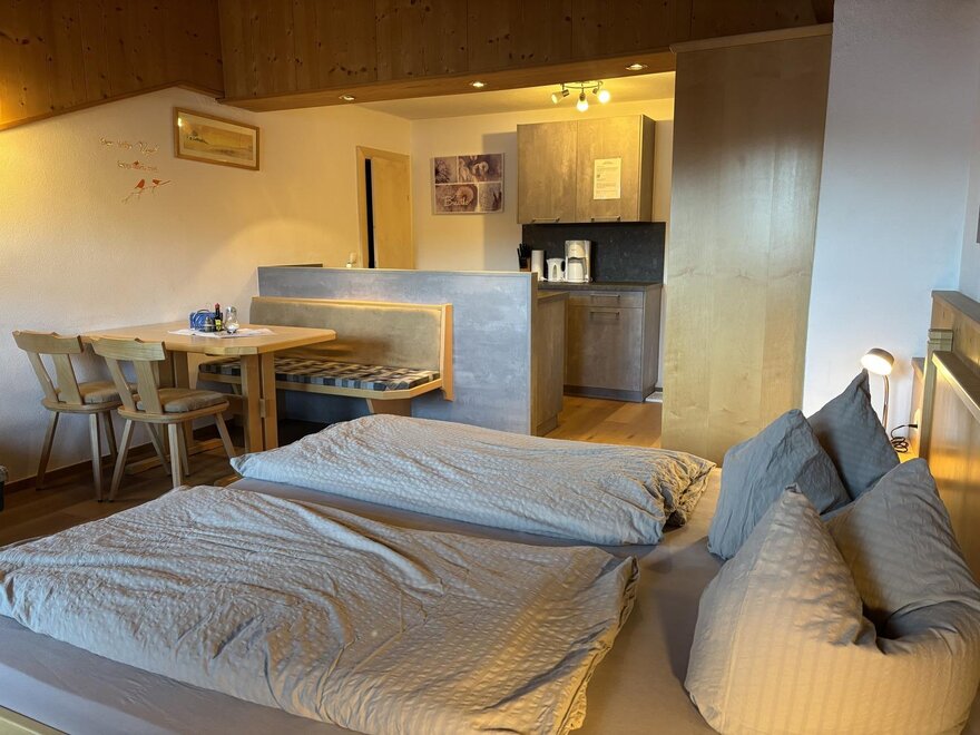geräumige Einraum-Ferienwohnung für bis zu 3 Personen mit Platz für ein Kinderbett bzw. Schlafcouch
