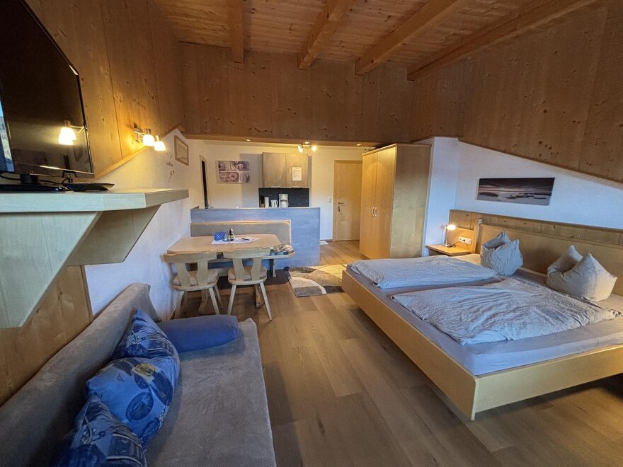 geräumige Einraum-Ferienwohnung für bis zu 3 Personen mit Platz für ein Kinderbett bzw. Schlafcouch