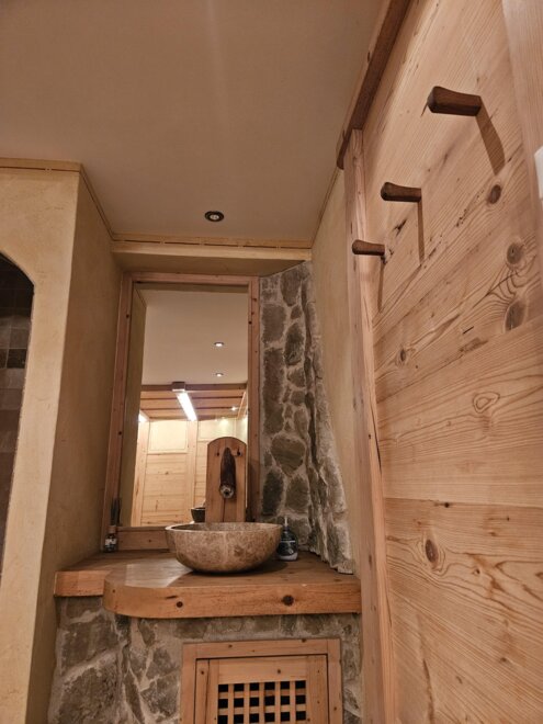 Unsere gemütliche Hütte bietet Platz für 10 Personen in 5 gemütlichen Hüttenzimmern, eine große Bauernstube, einer gut ausgestatteten Küche, Badezimmer auf jedem Stockwerk und einer Entspannungsoase mit Infrarotkabine im Keller.