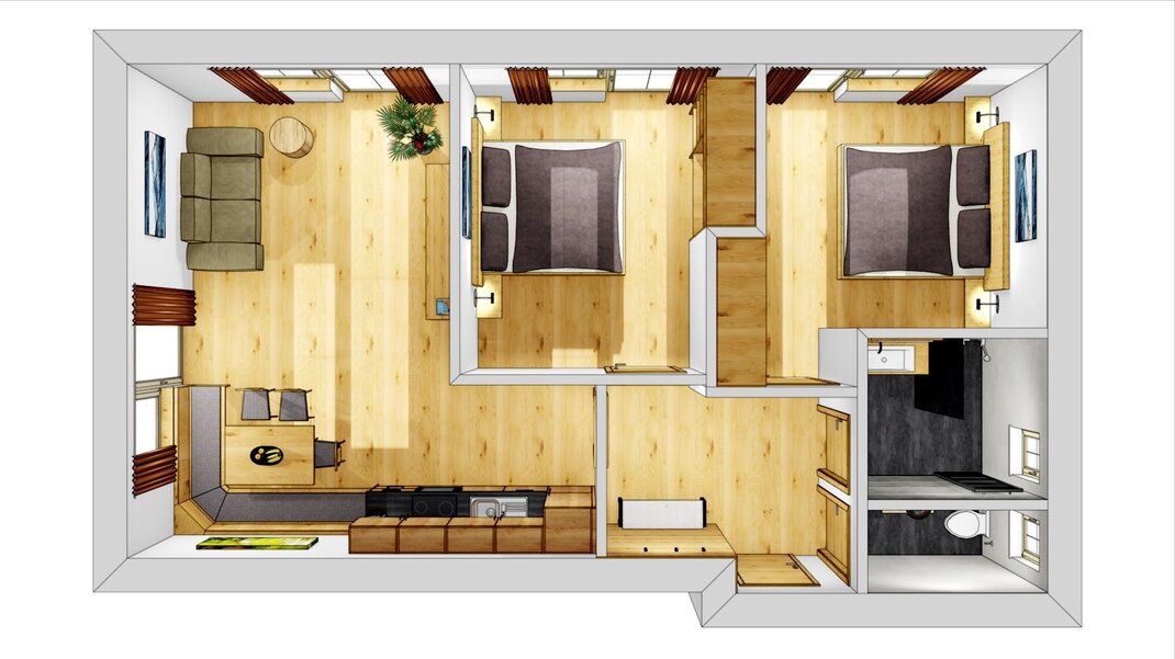 Anzahl Doppelbett/en: 2, Ausziehbare Couch, max. Pers.: 2
