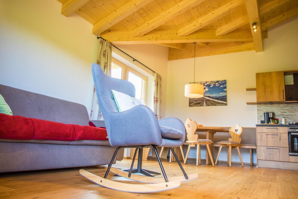 Bergromantik, das 1-Zimmer Appartment ist ein wahrer Holz-Wohntraum mit Sichtdachstuhl, mit TraumAusblick auf die Wildschönauer Bergwelt und mit eigenem Süd-Balkon. Das ideale Urlaubszuhause für Paare oder Eltern mit 1- 2 Kinder(Schlafcouch). Das Appartment befindet sich im 2. Stock - Dachgeschoßwohnung und ist bequem mit einem Personenlift zu erreichen, alles ist barrierefrei!