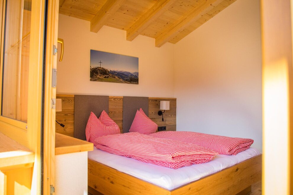 2 Doppelzimmer mit komfortablem Holzbett und Leselampe, wärmendem Holzboden, jedes Doppelzimmer mit Panoramabalkon,