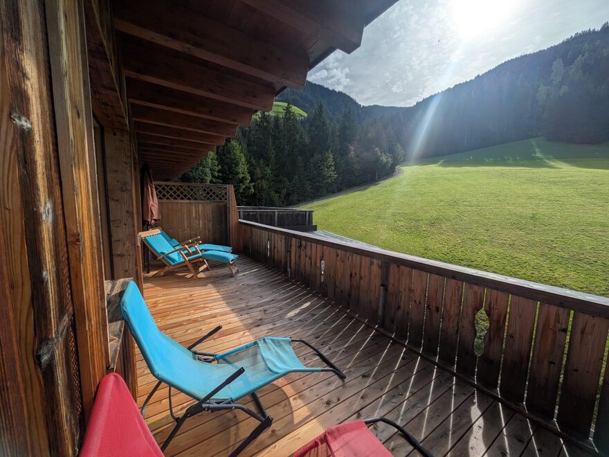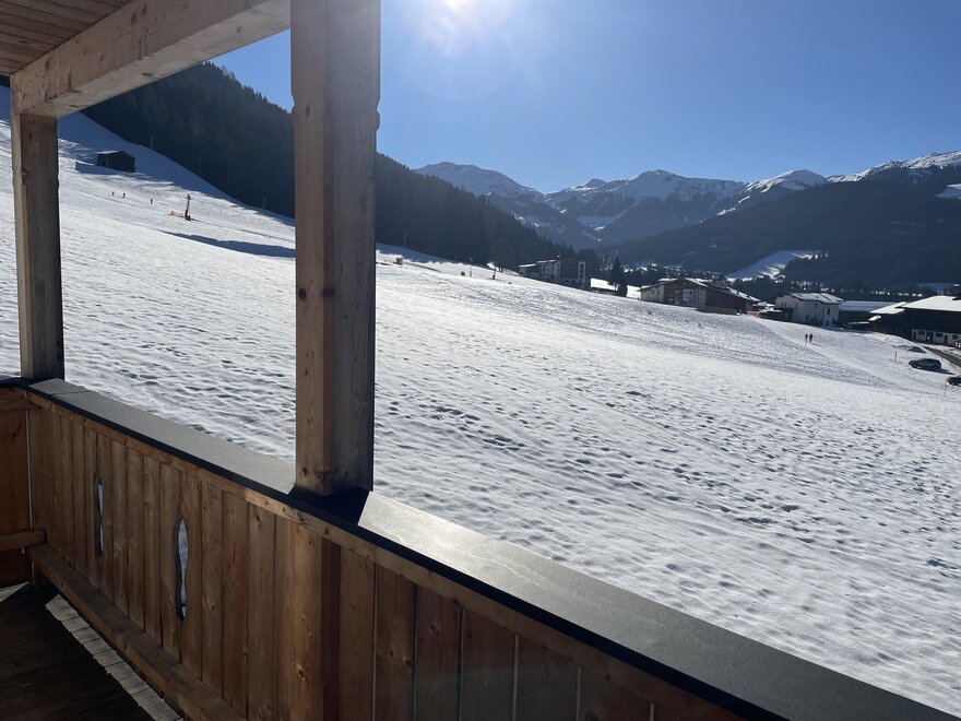 Balkon mit Bergblick und auf das Skigebiet Roggenboden