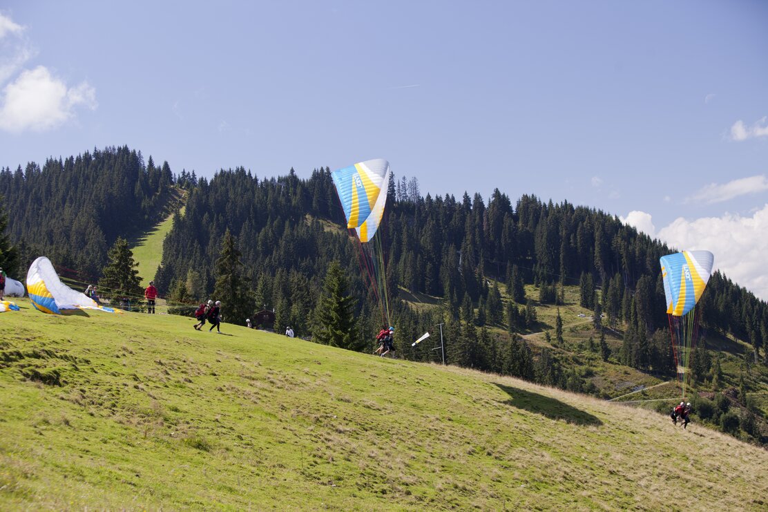 Culinary delights are provided at the huts at the mountain stations. The Markbachjoch is also one of the hottest areas for paragliders.