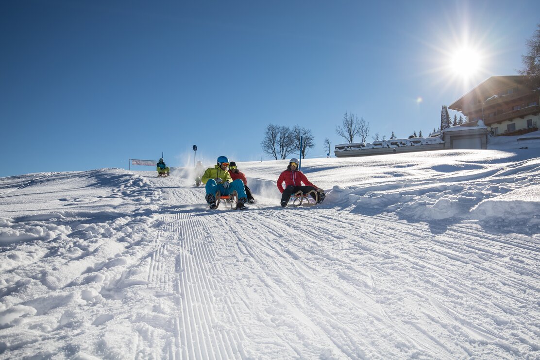 Good to know: You can also enjoy sledging down the mountain at night in the Wildschönau. In Roggenboden in Oberau, you are taken up the slope by drag lift by floodlight - and then speed down again on the piste.