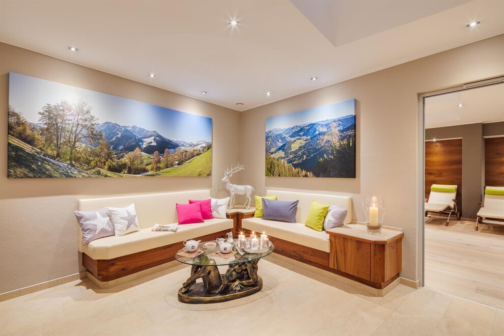 The Apparthotel Talhof is a small 4-star family hotel with an indoor pool, sauna, steam bath, infrared cabin, relaxation lounge, rest room, sun terrace, children's playrooms, and a hotel's own sheepfold with a natural lake, directly on the 300 km hiking network at the sun plateau Roggenboden in the Kitzbühel Alps.