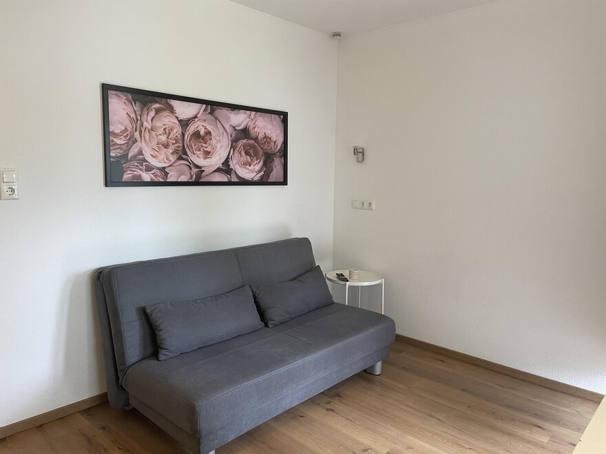 The apartment (45 sqm) is suitable for 2 - 4 people, has a bedroom with a double bed, a living room with a kitchen / dining table and a pull-out couch. The bathroom is equipped with a shower and a toilet.