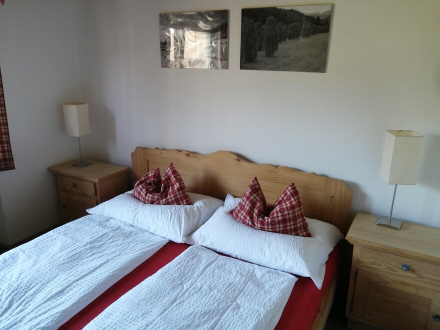 A separate staircase leads to the 80m² holiday apartment on the 1st floor. It has a large living room with a large dining table, stylish, fully equipped kitchen, hall for ski boots and clothing. 2 bedrooms with a total of 4 beds, bathroom, shower and toilet. South-west oriented