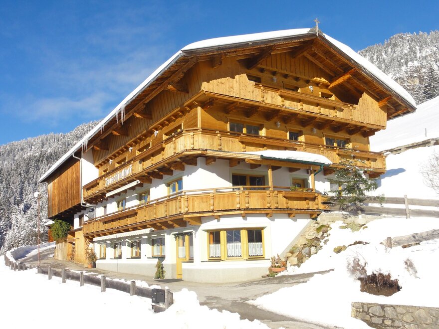 Our Foischinghof is a very beautiful cozy mountain hut in a wonderful quiet panoramic location. It is very well suited for groups of up to 46 people, making it ideal for a holiday with friends and families, for children, churches and youth retreats, for days of reflection, seminars, and group leisure activities, for anyone who appreciates and seeks a calm and pleasant atmosphere. There are 13 nice family rooms with wash facilities, sufficient showers and toilet facilities, a lounge and playroom, as well as a very cozy dining room available. Outdoors, we offer a barbecue hut for sociable barbecues with a campfire option, as well as a playground with a trampoline, swings, and slides, and a small football pitch. In bad weather, there is the possibility to defy the weather in our play barn.