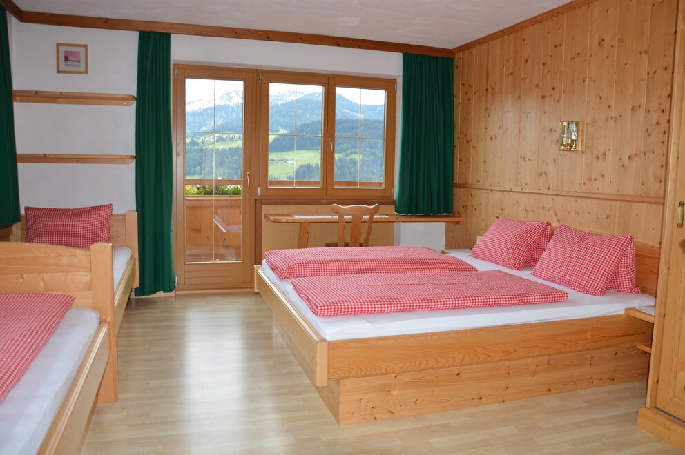 Our Foischinghof is a very beautiful cozy mountain hut in a wonderful quiet panoramic location. It is very well suited for groups of up to 46 people, making it ideal for a holiday with friends and families, for children, churches and youth retreats, for days of reflection, seminars, and group leisure activities, for anyone who appreciates and seeks a calm and pleasant atmosphere. There are 13 nice family rooms with wash facilities, sufficient showers and toilet facilities, a lounge and playroom, as well as a very cozy dining room available. Outdoors, we offer a barbecue hut for sociable barbecues with a campfire option, as well as a playground with a trampoline, swings, and slides, and a small football pitch. In bad weather, there is the possibility to defy the weather in our play barn.