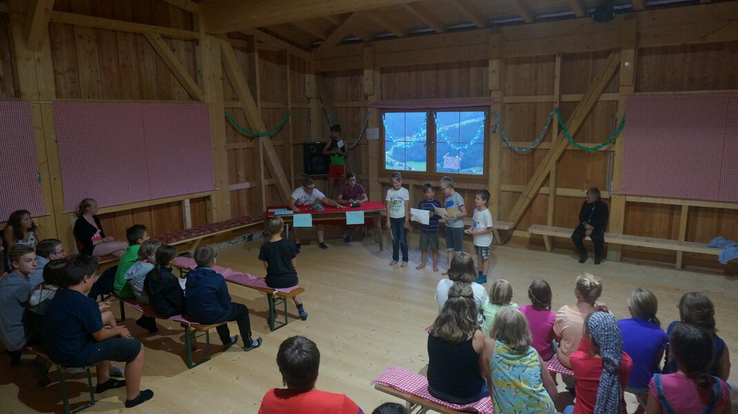 Our Foischinghof is a very beautiful cozy mountain hut in a wonderful quiet panoramic location. It is very well suited for groups of up to 46 people, making it ideal for a holiday with friends and families, for children, churches and youth retreats, for days of reflection, seminars, and group leisure activities, for anyone who appreciates and seeks a calm and pleasant atmosphere. There are 13 nice family rooms with wash facilities, sufficient showers and toilet facilities, a lounge and playroom, as well as a very cozy dining room available. Outdoors, we offer a barbecue hut for sociable barbecues with a campfire option, as well as a playground with a trampoline, swings, and slides, and a small football pitch. In bad weather, there is the possibility to defy the weather in our play barn.