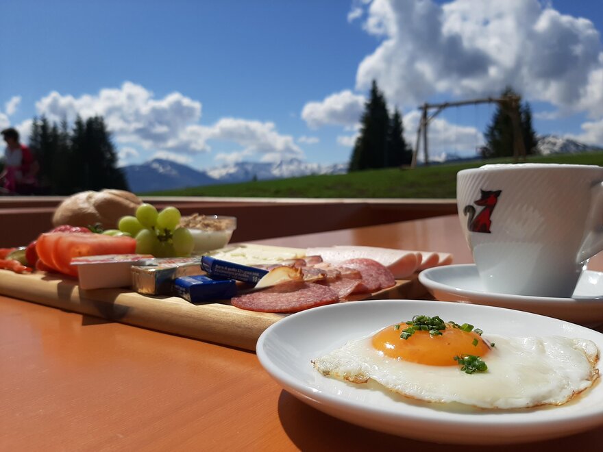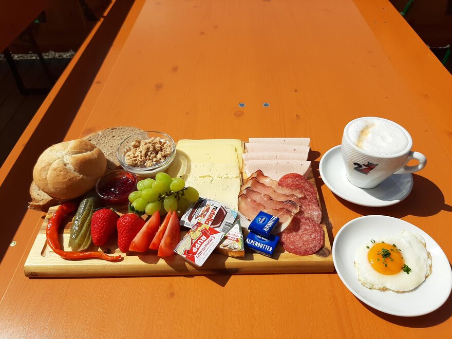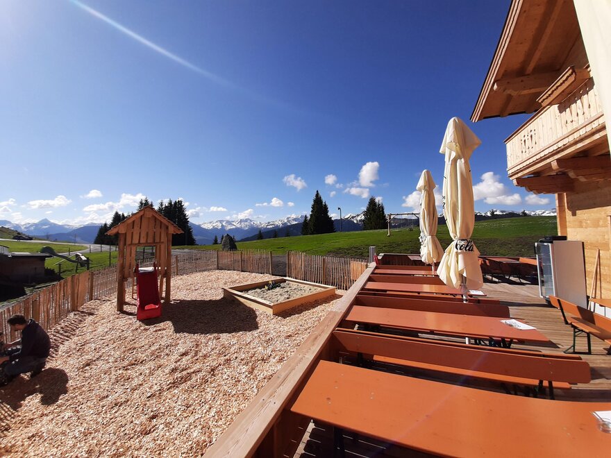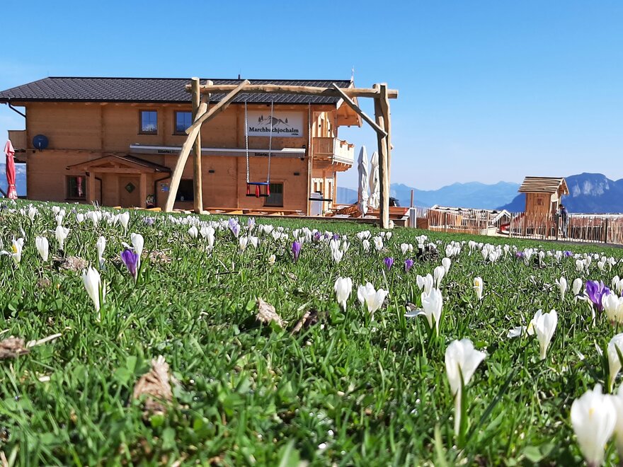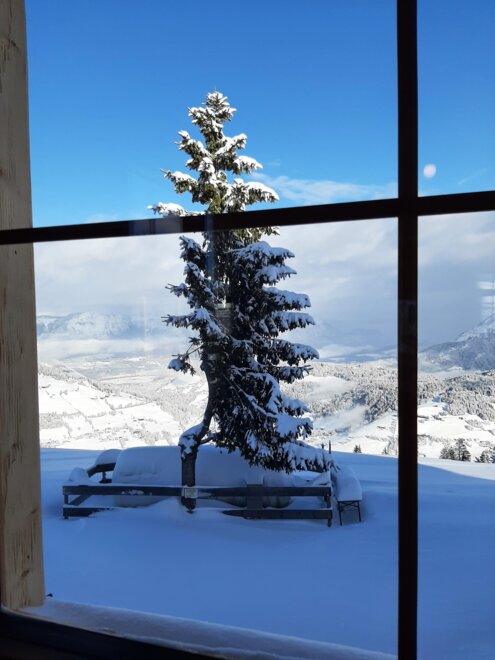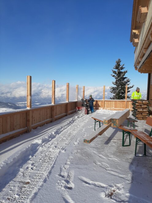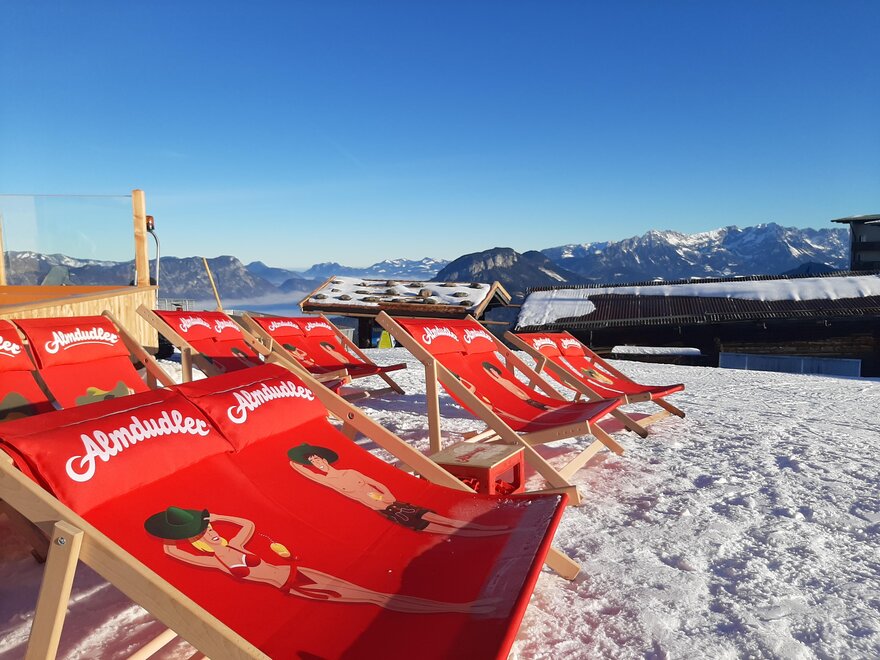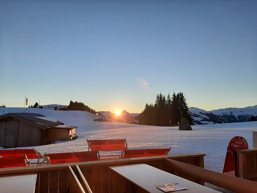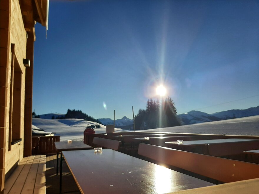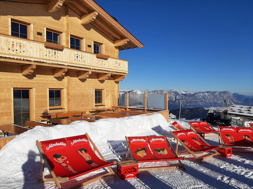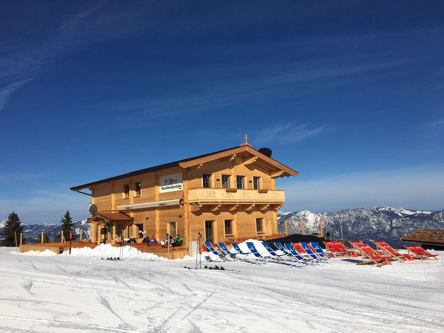 This great hut is located near the mountain station of the Markbachjoch Bahn in the middle of the ski slope.