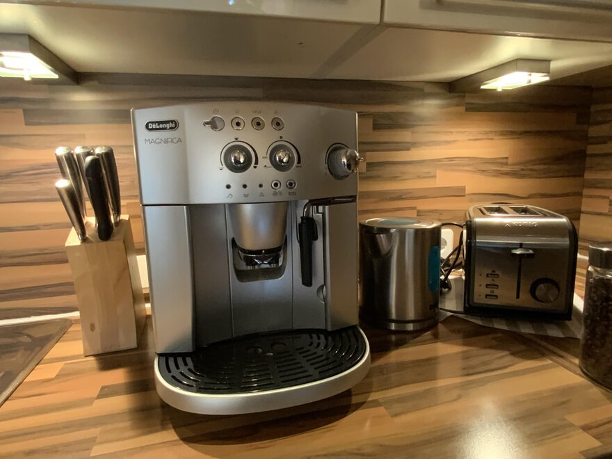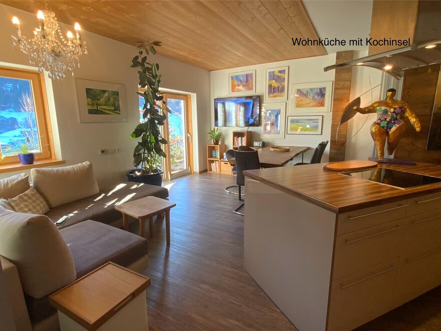 YOU enter the exceptional vacation domicile from the covered parking through the separate front door, the hallway, a small bedroom (160/200 cm bed) to the spacious living kitchen with adjoining south balcony including a dining area. On the same living level, there is also a guest WC and a storage room with a washing machine. Through the staircase, YOU reach the garden level with the large sleeping room (180/200 cm luxury bed, 90/200 cm single bed, infrared wellness lounger ), bathroom, and access to the terrace, arcades with fitness equipment & outdoor bed, garden including sauna (for private use). The spiral staircase takes YOU to the third living level with the third bedroom, two bathrooms and the large living room with access to the roof terrace.2 E-Bikes and 2 sleds are available for YOU. Ski room with ski boot dryer.
