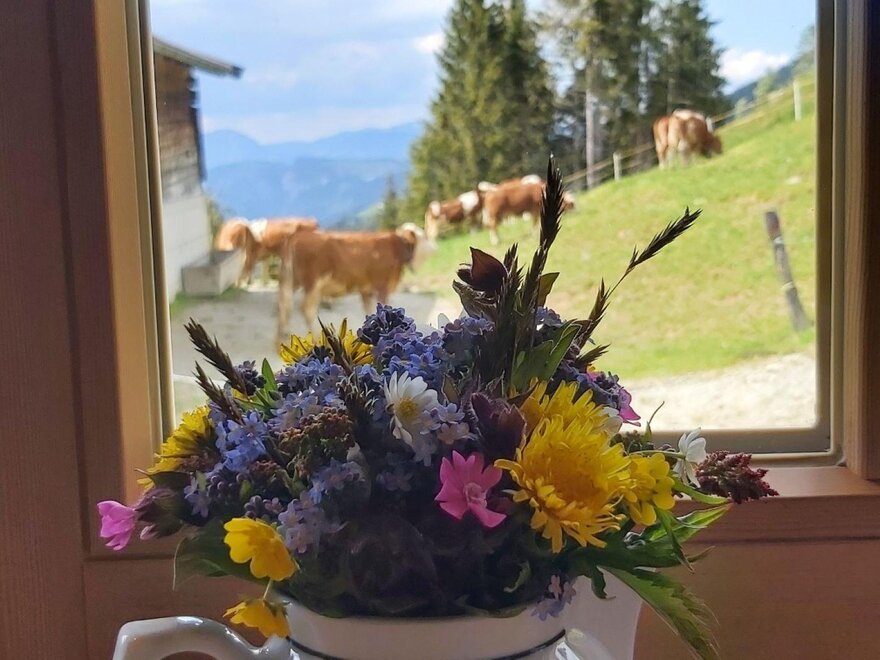 Our Prädasten Alm is well equipped and offers space for up to 7 people. There is a solid wood, fully equipped kitchen as well as an electric and wood stove. In the separate storage room you will find enough space to store your groceries - a fridge and freezer are also available.