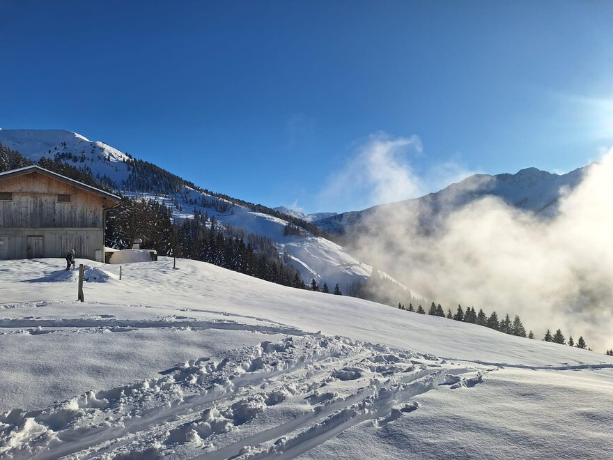 Arrival Spring/Winter: Luggage and food transport are organized by us and included in the price. You can park your car directly at our farm. You can reach our Prädastenalm on foot, with snowshoes, or touring skis in about 1 hour of walking.