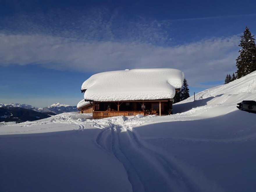 Enjoy the crystal-clear mountain air at 1,480 m above sea level, the sunny location below the Feldalphorn - surrounded by the magnificent mountain world of the Kitzbühel Alps. Popular ski touring and hiking area. The cabin impresses with its secluded location and is also ideal for enjoyment and relaxation - whether on the large covered terrace, in front of the Sweden stove, or simply outdoors in a deck chair - there is plenty of space around the cabin for you to claim as your own.