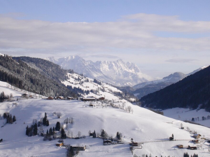 Our actively managed Schürzberghof is located in the village of Thierbach in the Wildschönau. Due to its secluded location amidst our meadows, we are in a very quiet setting. From the balconies of our holiday apartments, you have a wonderful view of the surrounding mountain landscape. Particularly striking is the "Wilde Kaiser". You can start smaller hikes and walks directly from our place.