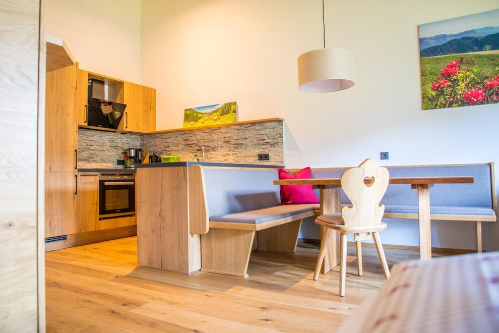 On the day of arrival the apartment is ready for you from 3 p.m. If you arrive a little bit earlier, you can enjoy the idyllic mountain air in our mountain farming village Thierbach. Of course, we do our best so that you can move into the apartment as early as possible.