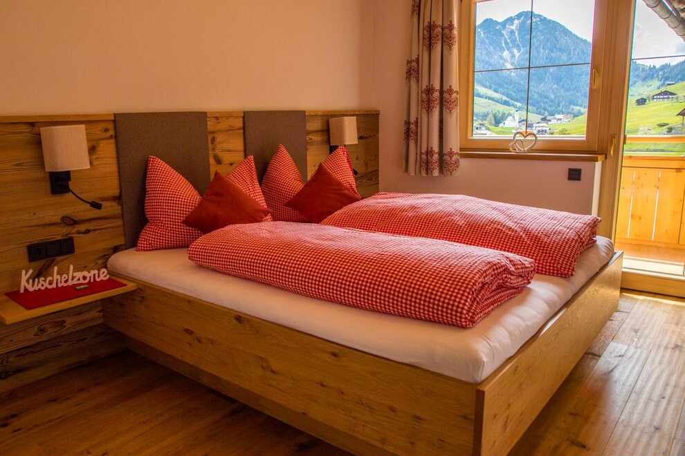 BERGROMANTIK, the 1-room apartment is a real wooden dream home with exposed roof truss, incomparable panoramic view of the Wildschönau mountains and its own south-facing balcony.