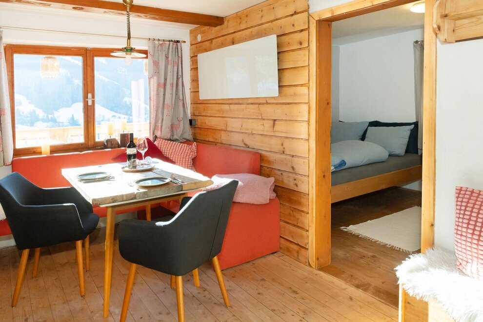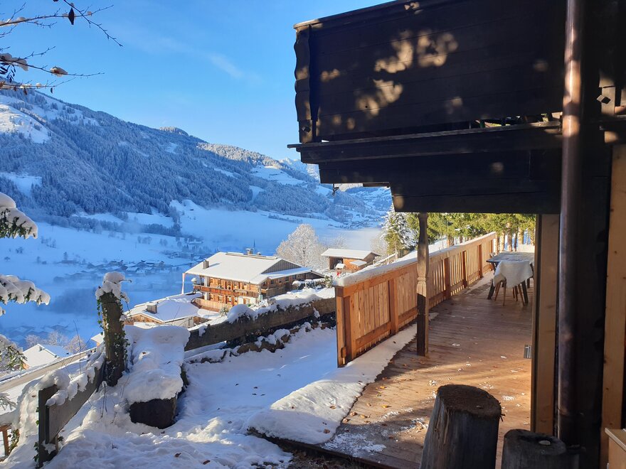 The arrival is via the Wildschönau Road to Niederau. In the village, turn left into Grafenweg at the Klausenhof hotel and follow the road uphill. After about 2 km, you will reach the parking lot (signposted, approximately 400 m below the hut). One parking space is available for each apartment. From there, a gravel path leads on foot in about 5–10 minutes slightly uphill directly to the hut.