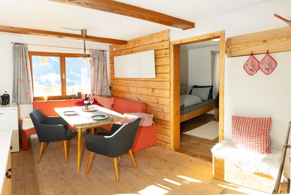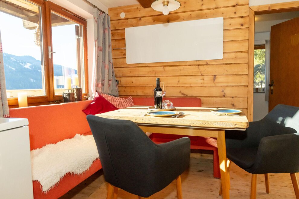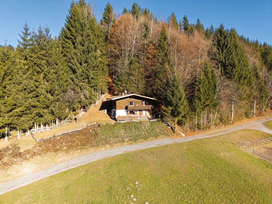 The arrival is via the Wildschönau Road to Niederau. In the village, turn left into Grafenweg at the Klausenhof hotel and follow the road uphill. After about 2 km, you will reach the parking lot (signposted, approximately 400 m below the hut). One parking space is available for each apartment. From there, a gravel path leads on foot in about 5–10 minutes slightly uphill directly to the hut.