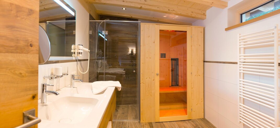 The apartment has 1 double room, 1 attic double room, kitchen-living room, 2 balconies, bathroom with infrared heat cabin, WLAN, TV, parking in front of the house, towels and hairdryer, bed linen, fully equipped kitchenette and ski room with boot dryer.