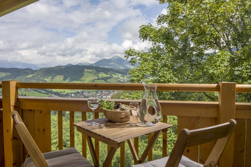 The Kaiser Apartment is the holiday apartment with a special extra. Whether you are in the living room or in bed, you have a dream view from everywhere. The apartment with sloping roof is approx. 60m² and has two bedrooms with double beds and a living room with an open kitchen. It also has a modern bathroom with shower and a separate toilet. The wardrobe is located in the entrance area.